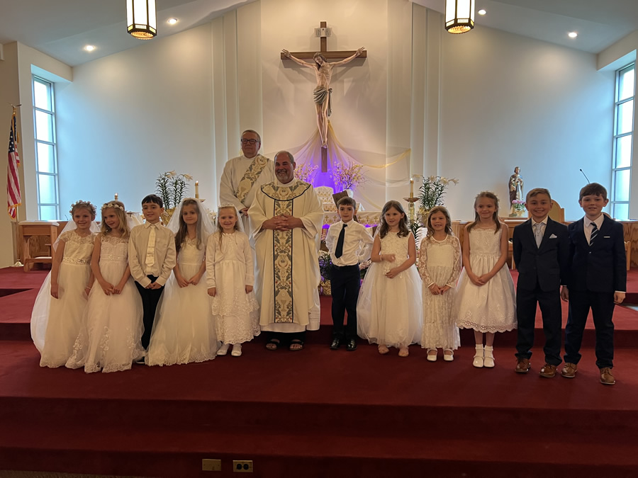 Children should have completed 2 years of religious education before making their first Holy Communion. Depending on when your child begins his or her religious education, they may receive their First Eucharist in either the 2nd Grade or 3rd Grade (or a higher grade. It is never too late!)